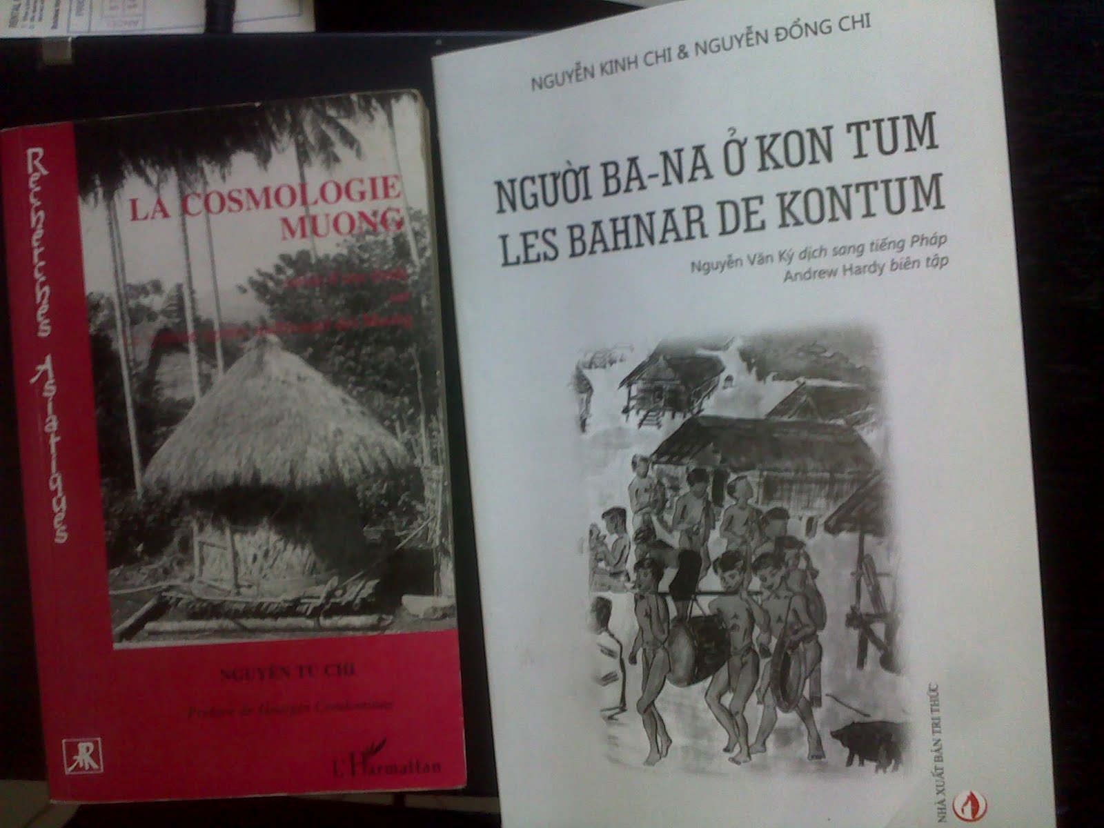 Quyển bên tay phải (NXB Tri Thức) là in lại (lần đầu tiên trong lịch sử) Mọi Kontum huyền thoại (in lần đầu năm 1937, bây giờ gần như không ai có nữa cả). Hồi Nguyễn Kinh Chi (công chức nhà nước bảo hộ, nghề bác sĩ) lên Kontum vào năm 1933, ông đã gọi em trai mới 18 tuổi Nguyễn Đổng Chi lên cùng và sau này Mọi Kontum đã ra đời, được Andrew Hardy (Trường Viễn Đông Bác cổ, giờ không biết còn làm ở đó nữa không) nồng nhiệt khen ngợi.